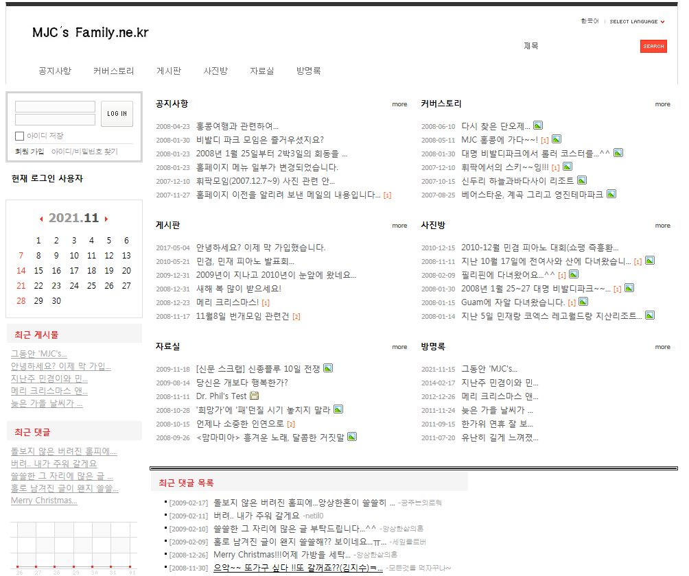우리의 푸른 시절 추억을 담아두었던 MJC 홈페이지가 그동안 버려져 방치되다가