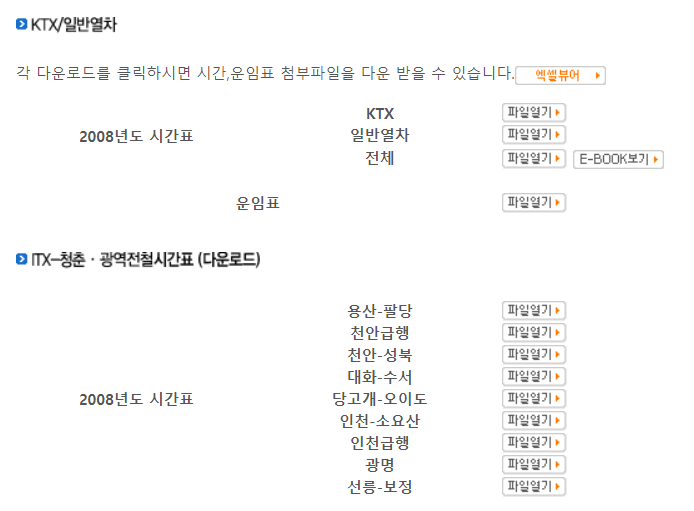 2008년도 시간표KTX일반열차전체