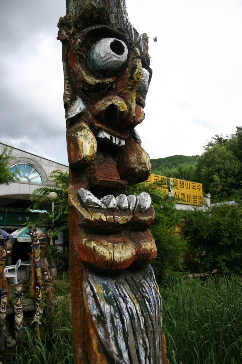 홍천방면 지나 어느 휴게소에서 본 남새스런 장승(그중에서 얌전한 놈으로...^^)과,