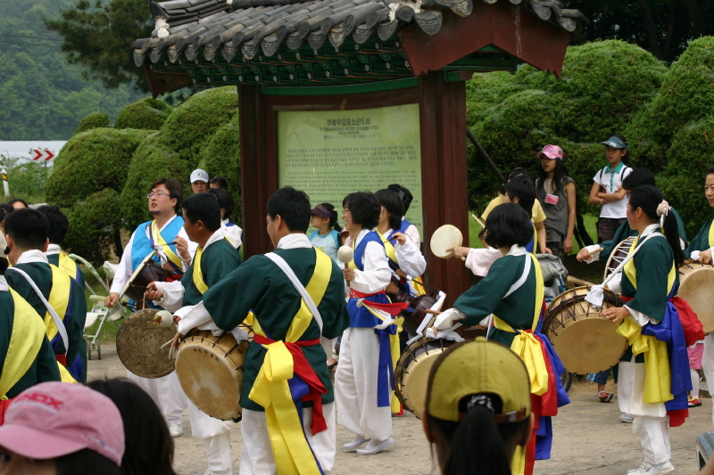 4일 아침 간단히 요기를 하고 천안 까루프를 향했다. 버스로 옮겨타고 30분가량 이동하여 단오제 행사장인 이순신장군묘역이 있는 음봉초등학교에 도착하였다. 묘역부터 초등학교까지 길놀이로 이동하고 주최측에서 준비한 여러 행사에 참가하였다.